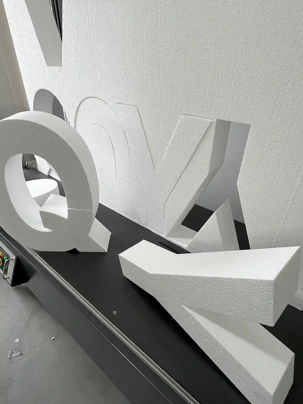 Disponemos de maquinaria propia para la fabricación de todo tipo de letras corpóreas. Fresadora CNC, maquinaria de corte láser CO2, cortadora de hilo caliente para porex y maquinaria para canteo de las letras metálicas.